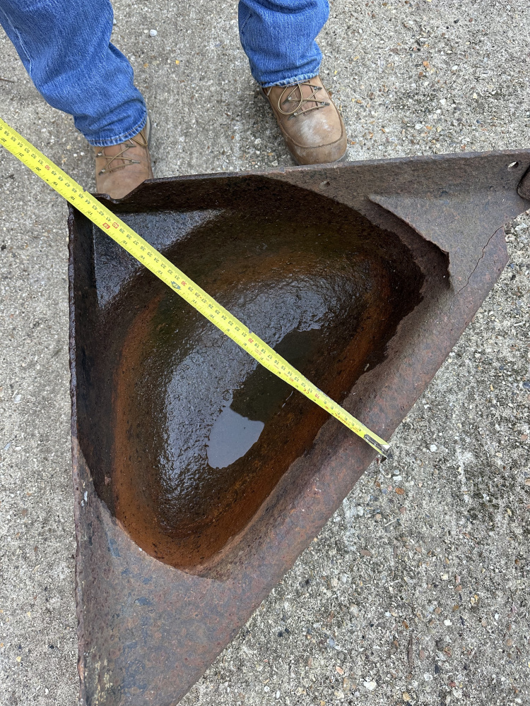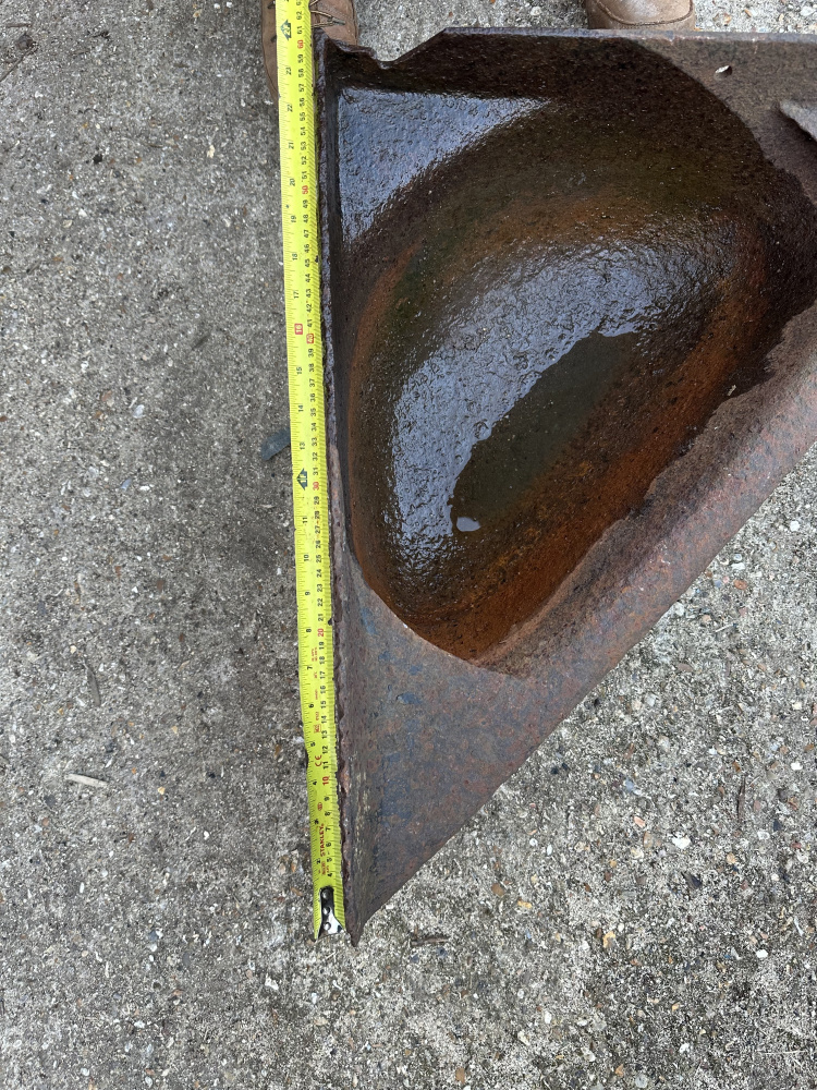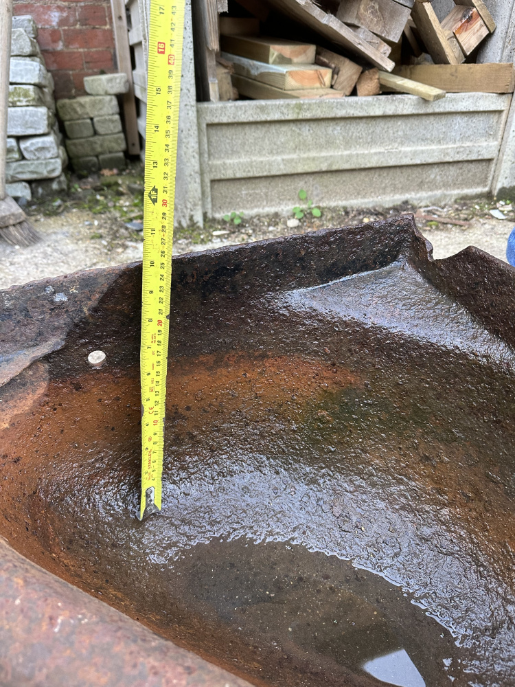 We have two of these water troughs for purchase one has slight damage to corner as pictured. Made of iron and measuring 600mmx600mm and approximately 250mm depth.